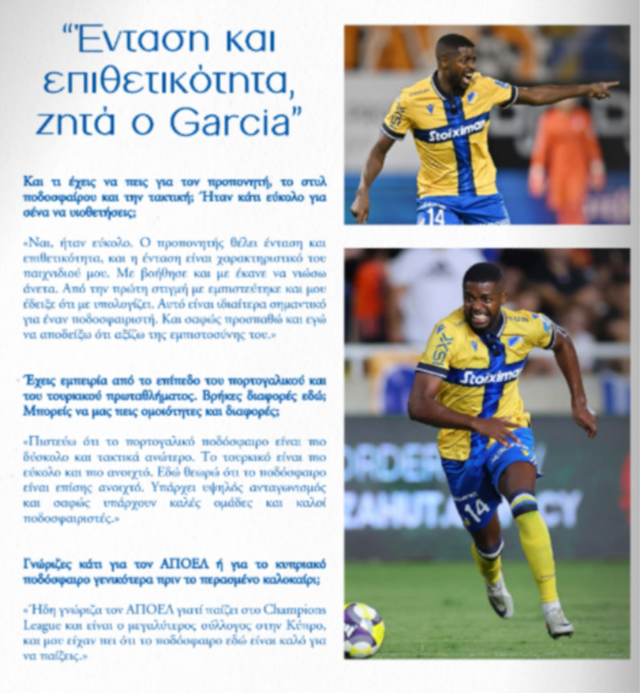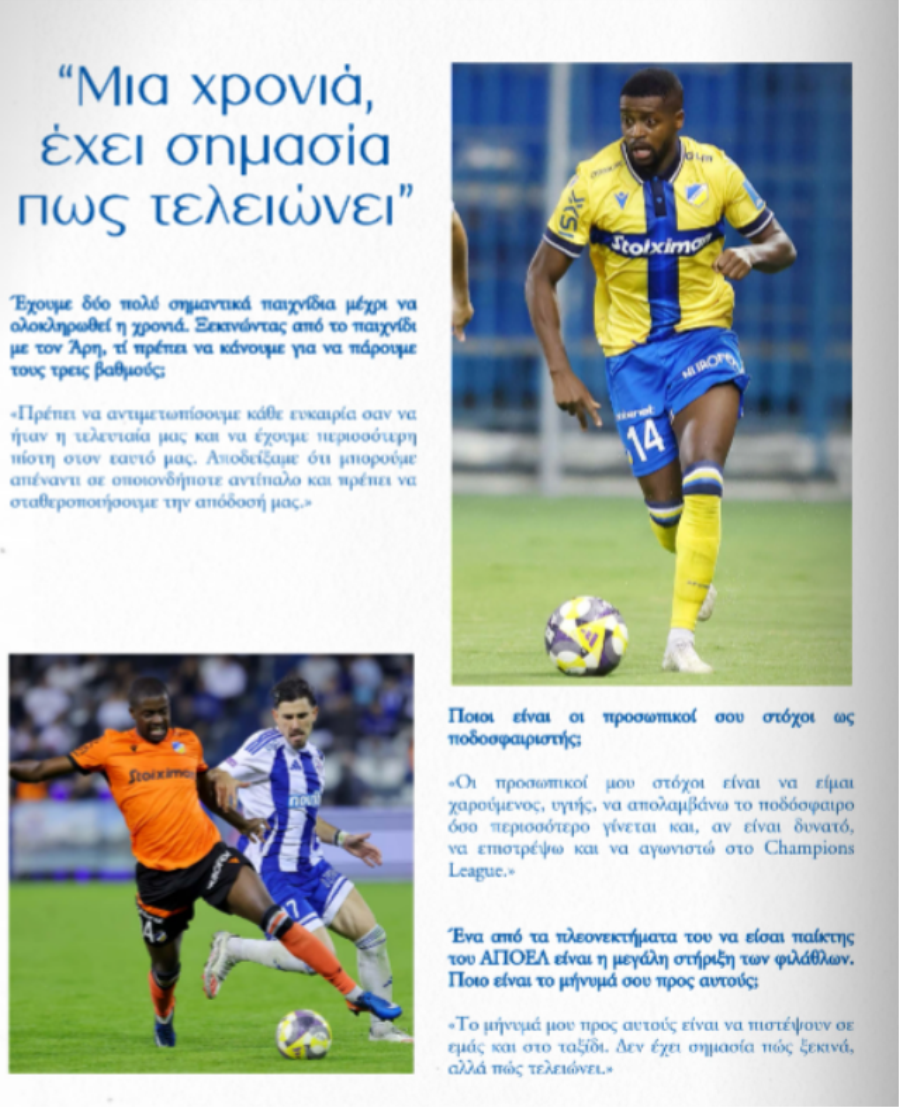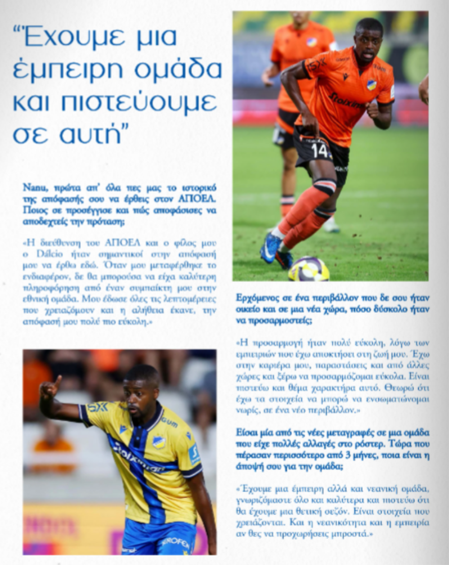 Συνέντευξη στο επίσημο περιοδικό αγώνα του ΑΠΟΕΛ, ενόψει του σημερινού (17:00) ντέρμπι με αντίπαλο τον Άρη, παραχώρησε ο Νανού.
