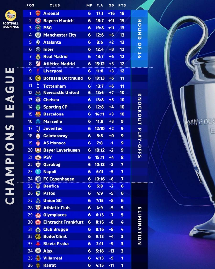 Και η ΒΑΘΜΟΛΟΓΙΑ μετά από 6 αγωνιστικές: