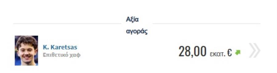 Ακόμη πιο δυναμικά κινείται ο Κωνσταντίνος Καρέτσας, ο οποίος συνεχίζει την εκρηκτική του άνοδο, βλέποντας την αξία του να αυξάνεται κατά 5 εκατ. ευρώ και να φτάνει στα 28 εκατ. ευρώ.