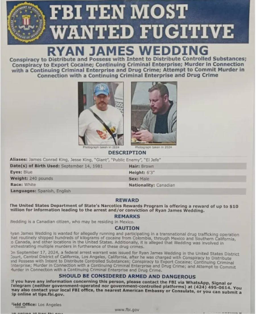 Στο μεταξύ, το FBI συνεχίζει να σφίγγει τον κλοιό γύρω από τον Ράιαν Γουέντινγκ και τους συνεργούς του (τον περασμένο μήνα συνέλαβαν τον υπαρχηγό του, Ρασίντ Πάσκουα Χοσαϊν, για διακίνηση κοκαΐνης και ξέπλυμα χρήματος).