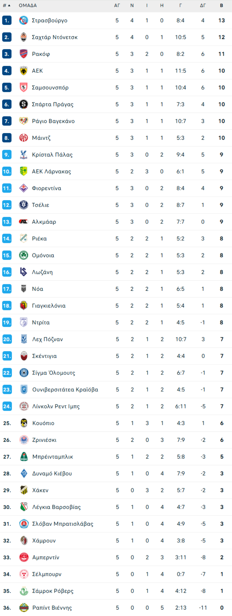 Για να ελπίζει η ΑΕΚ σε μια θέση στην οκτάδα πέραν της νίκης κόντρα στην Σκέντιγια για να ανέβει στους 12 βαθμούς θα χρειαστεί συνδυασμό αποτελεσμάτων, η Ρακόφ είναι στην 3η θέση με 11 βαθμους και αν η Ομόνοια την νικήσει θα την κρατήσει στους 11.