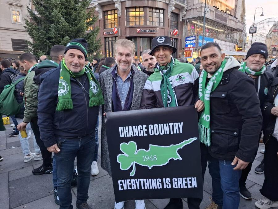 Ο πρόεδρος του σωματείου της Ομόνοιας Μάριος Αργυρίδης και ο πρόεδρος του ποδοσφαιρικού τμήματος Σταύρος Παπασταύρου επέλεξαν για ακόμα μία φορά να είναι ανάμεσα στους οπαδούς βιώνοντας από κοντά την αγάπη προς την ομάδα.