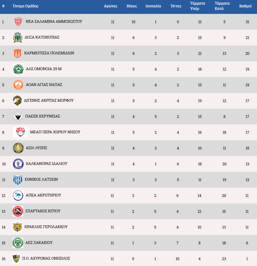 Η ΒΑΘΜΟΛΟΓΙΑ ΜΕΤΑ ΤΗΝ ΠΡΟΗΓΟΥΜΕΝΗ ΑΓΩΝΙΣΤΙΚΗ: