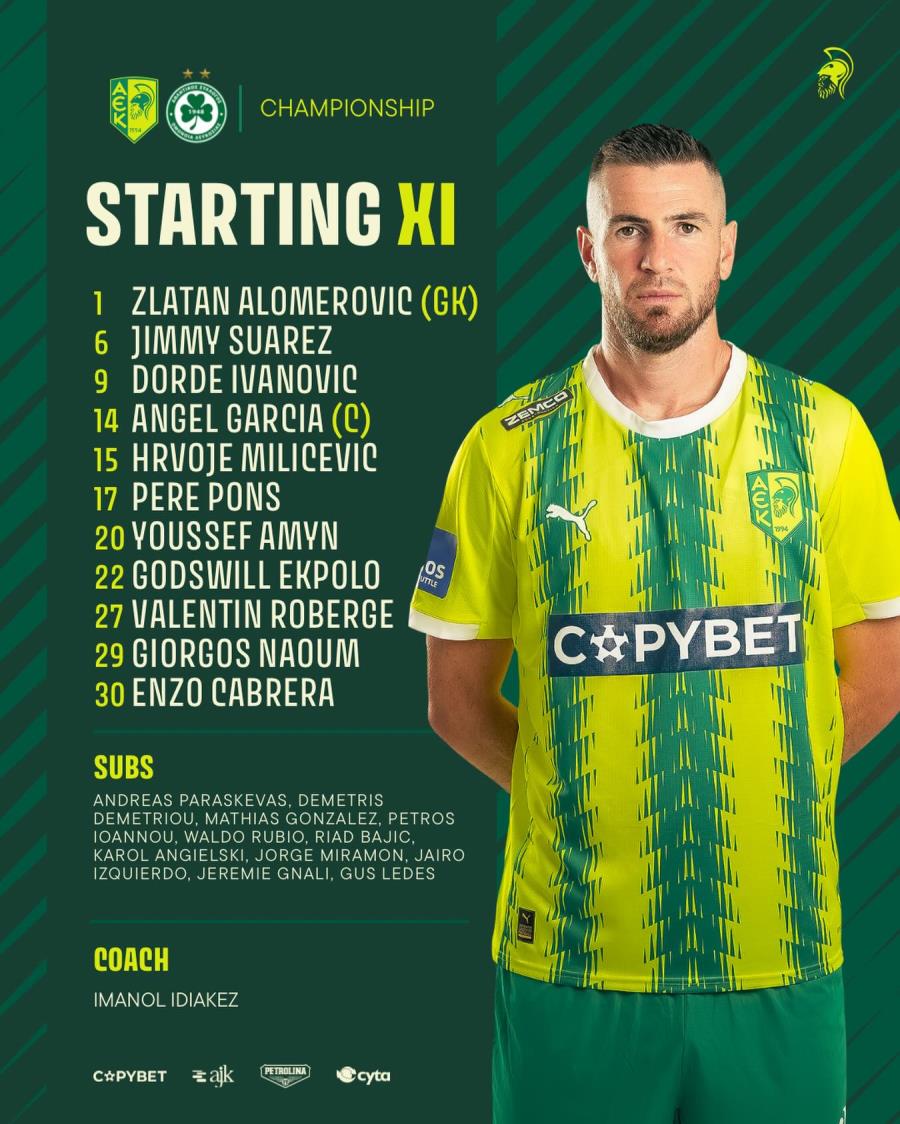 Στον πάγκο οι Κυριακίδης, Ντιουνκού, Στεπίνσκι, Χατζηγιοβάνης, Μάριτς, Αγκουζούλ, Α.Ανδρέου, Χαμάς, Σίμιτς, Κούσουλος, Εράκοβιτς, Π.Ανδρέου.