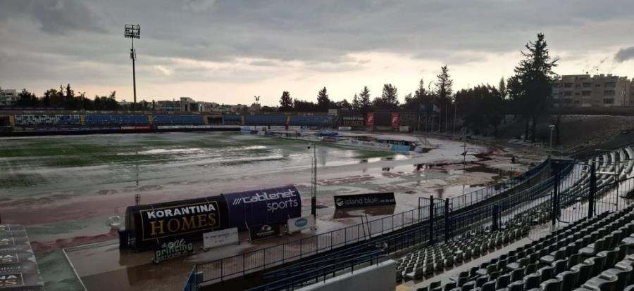 Η συνεχής βροχή μετέτρεψε τον αγωνιστικό χώρο σε... λίμνη μέσα σε λίγο λεπτά!