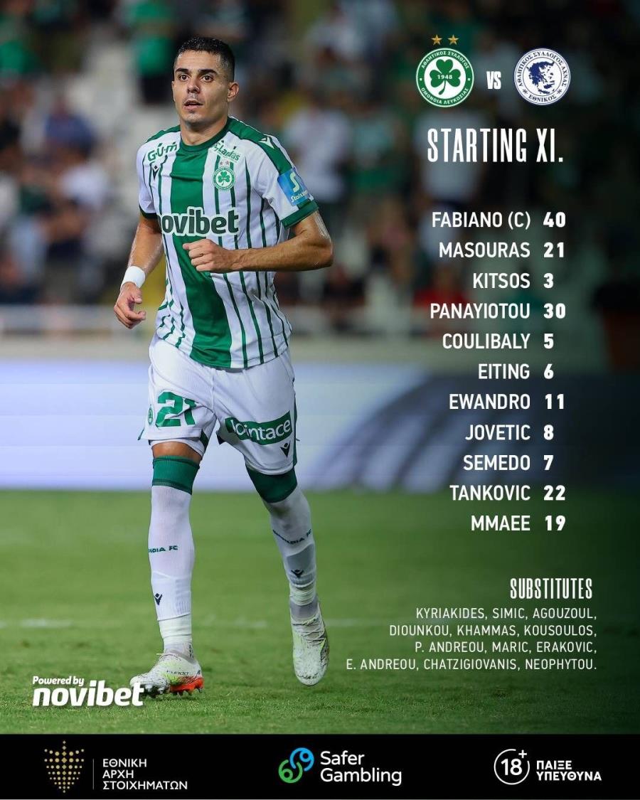 Στον πάγκο: Κυριακίδης, Ντιουνκού, Χατζηγιοβάνης, Μάριτς, Αγκουζούλ, Ανδρέου, Χαμάς, Σίμιτς, Κούσουλος, Εράκοβιτς, Ανδρέου, Νεοφύτου.