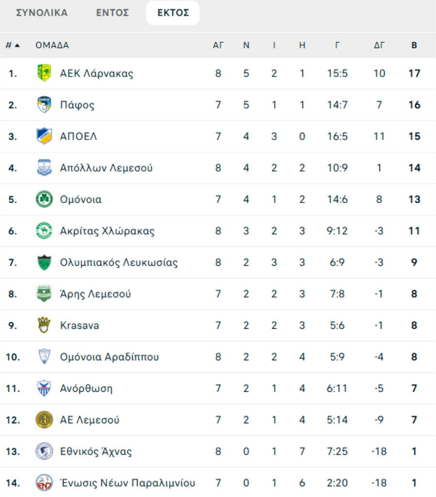 8η αγωνιστική(27/10):ΑΕΚ – ΑΠΟΕΛ 1-1 (Σαμπορίτ 49'/Σωτηρίου 25' πεν.)