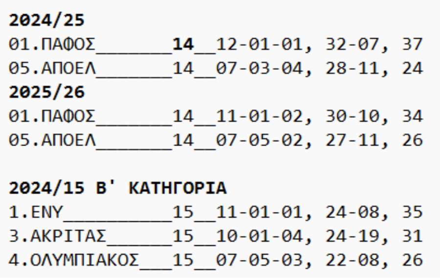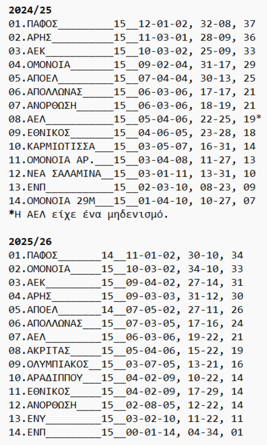 Η Πάφος σε 14 ματς είναι στο -3 και ο ΑΠΟΕΛ +2.