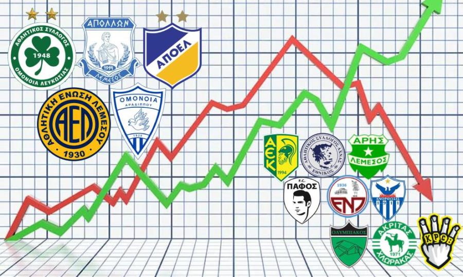 Η Ομόνοια παρουσιάζει επίδοση ανώτερη από την περσινή της συγκομιδή στο αντίστοιχο σημείο της σεζόν καθώς είναι στο +4 και ακολουθούν ο Απόλλωνας +3, η ΑΕΛ +2, η Ομόνοια Αραδίππου +1.