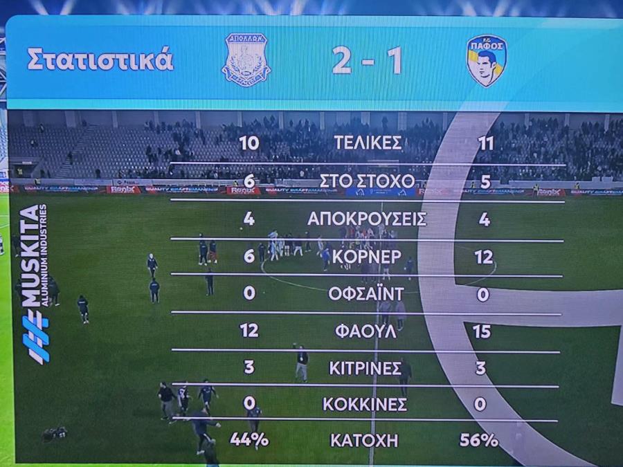 Απόλλωνας–Πάφος 2-1 (Mαρκες 6', Ροντρίγκεζ 52' πεν./Mπρούνο 38')