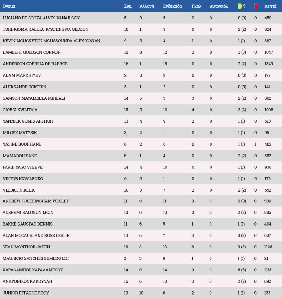 Στον πάγκο οι: Πρινιωτάκης, Αβραμένκο, Ντα Γκράσα, Γιέμπλι, Νταβιντιάν, Μελνιτσένκο, Ντε Ιριόντο, Κυριάκου, Άντο.