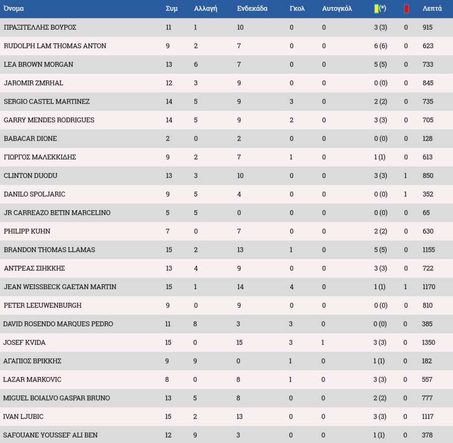 Τα στατιστικά των ποδοσφαιριστών: