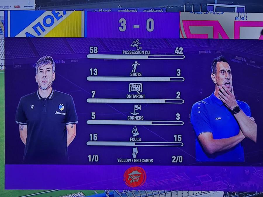 ΑΠΟΕΛ: Μπέλετς, Αντωνίου, Σταφυλίδης, Ντράζιτς (Διαμαντάκος 70'), Μαρκίνιος (Κούτσακος 64'), Αμπάκνα, Ντάλσιο, Κόρμπου, Μπρόρσον, Νάνου (Πουρσαϊτίδης 70'), Τομάς (Άπια 83').