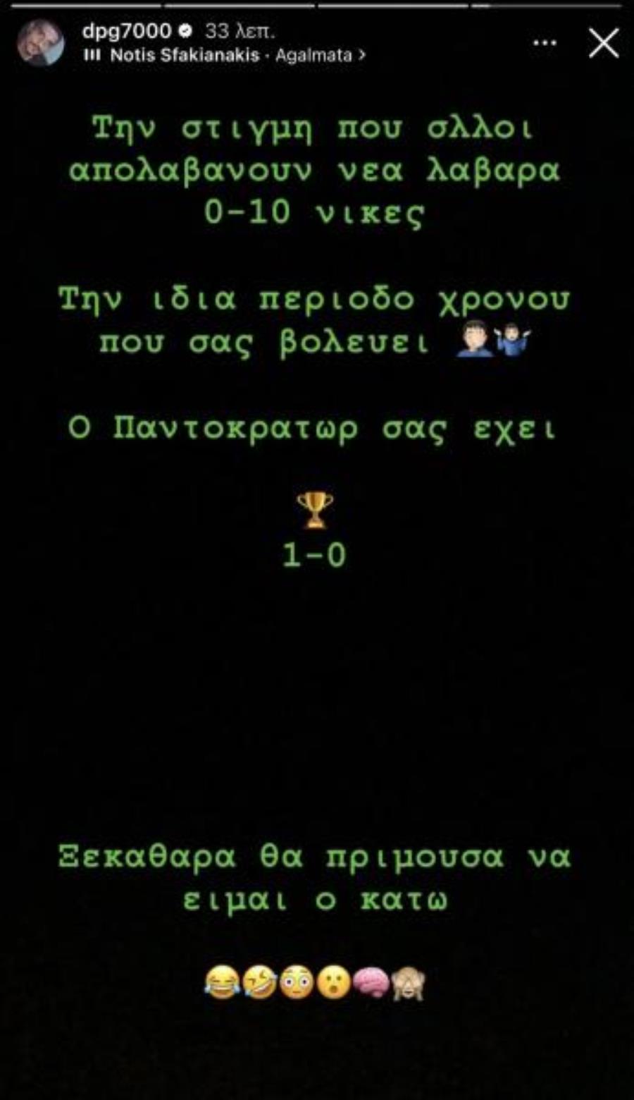 Μάλιστα, συνόδευσε το σχετικό story με το τραγούδι «Αγάλματα» του Νότη Σφακιανάκη.