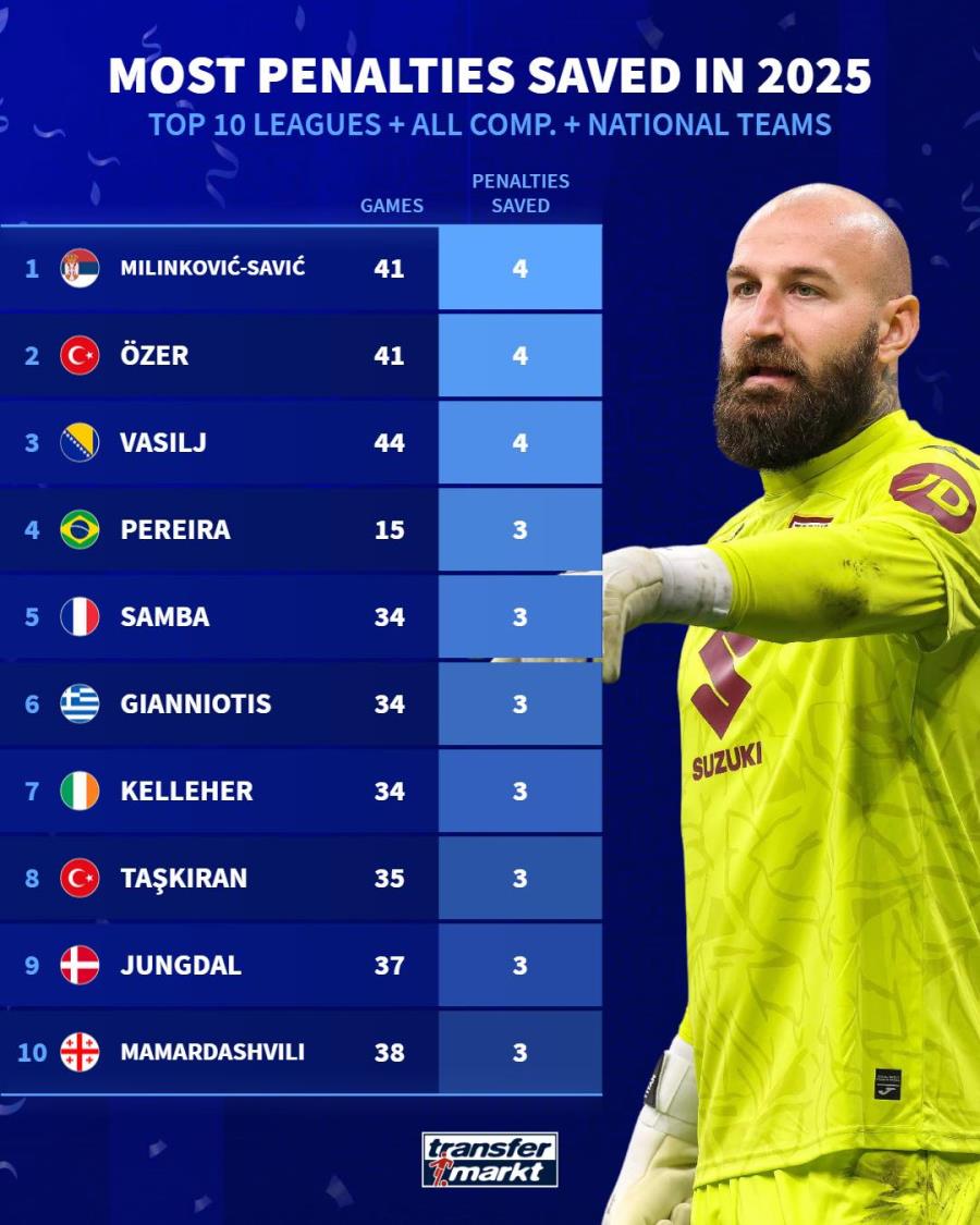 Ένα νούμερο αρκετά μεγάλο, καθώς του δίνει και τη 2η θέση σε ισοβαθμίες για τις περισσότερες αποκρούσεις μέσα στη χρονιά, αν εξαιρέσουμε τις διαδικασίες των πέναλτι!