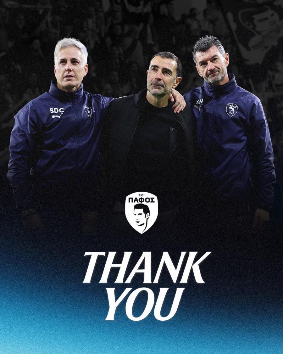 «Η ΠΑΦΟΣ FC επιβεβαιώνει ότι ο Προπονητής Juan Carlos Carcedo έκανε χρήση της συμβατικής ρήτρας που του επιτρέπει την εξαγορά του συμβολαίου του, καθώς και των συμβολαίων των δύο συνεργατών του, και αποφάσισε να αποχωρήσει από τον σύλλογο για ένα διαφορετικό πρότζεκτ.