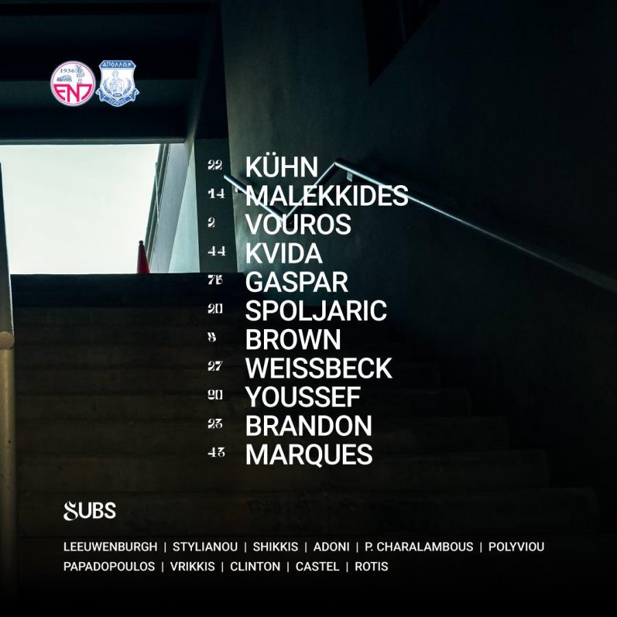Η 11άδα του Απόλλωνα για το ματς με την ΕΝΠ