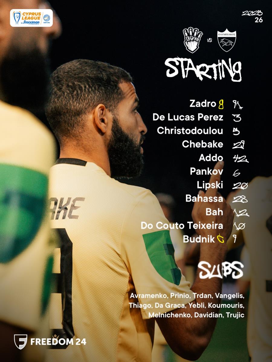 Στον πάγκο: Πρινιωτάκη, Αμβραμένκο, Ντα Γκράκα, Τρούγιτς, Γεμπλί, Κουμουρής, Νταβιντιάν, Μελνιτσένκο, Κυριάκου, Τρντάν, Σίλβα