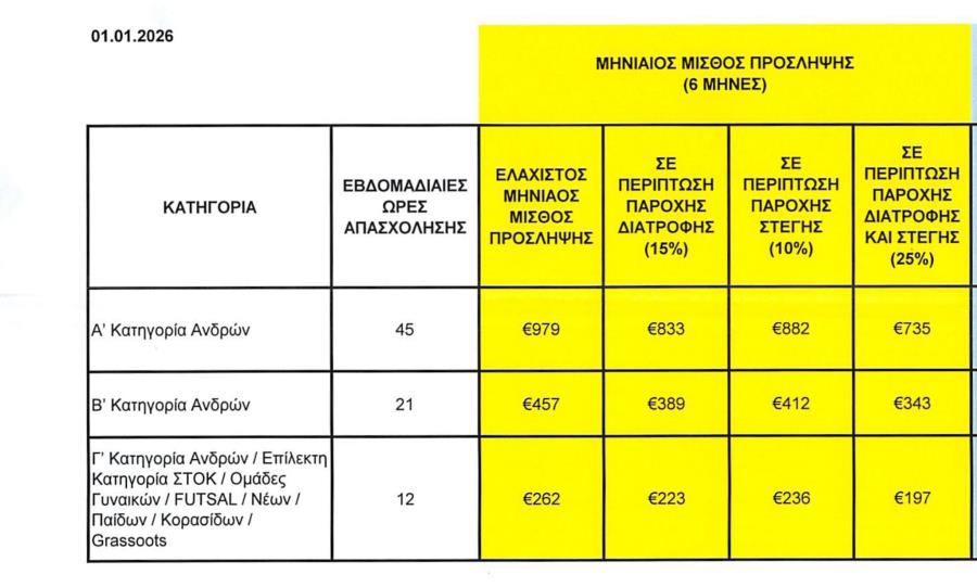 Συγκεκριμένα: Για τις επαγγελματίες ποδοσφαιρίστριες, η ΚΟΠ καθορίζει κατώτατο μισθό μόλις €262, αντί του νόμιμου κατώτατου μισθού των €979 που ισχύει για τους άνδρες επαγγελματίες ποδοσφαιριστές.