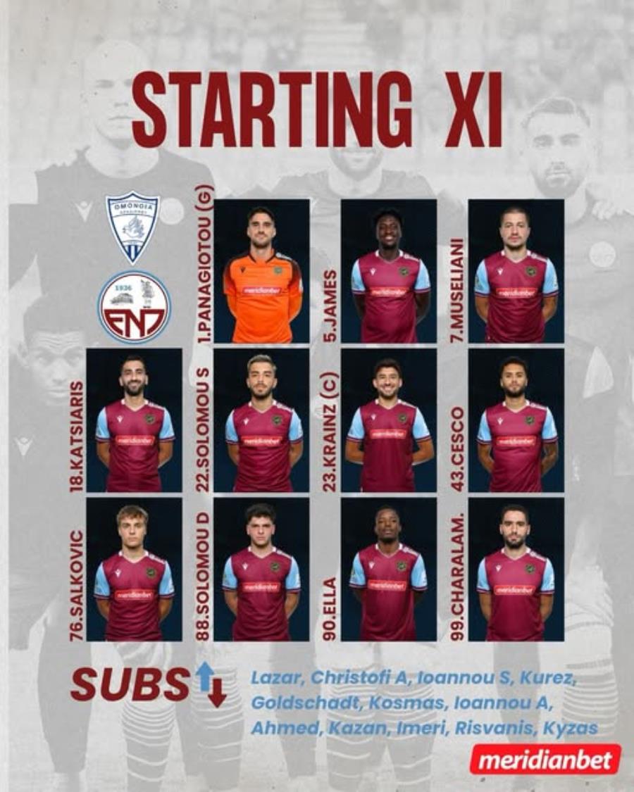 Στον πάγκο: Λαζάρ, Χριστοφή, Ιωάννου, Κούρεζ, Γκόλνστχαντ, Σ. Ιωάννου, Κοσμάς, Αχμέντ, Καζάν, Α. Ιωάννου, Ίμερι, Ρισβάνης, Κύζας