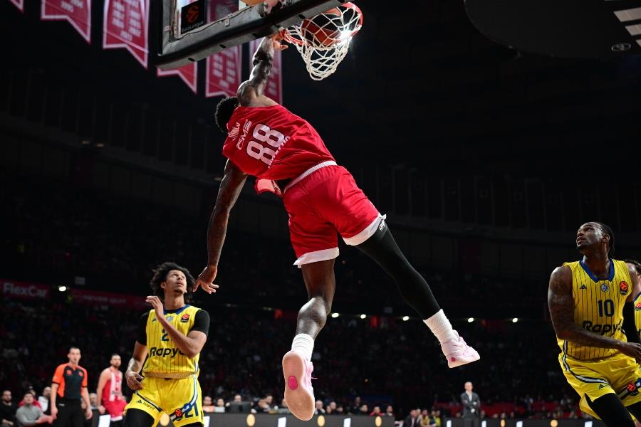 Με τον Εβάν Φουρνιέ να «κόβει και να ράβει» στην επίθεση με σκορ και ασίστ, τον Τζόουνς να προσφέρει σκορ και θέαμα με καρφώματα και μπλοκ, ο Ολυμπιακός προηγήθηκε με 35-30 στο 13ο λεπτό.