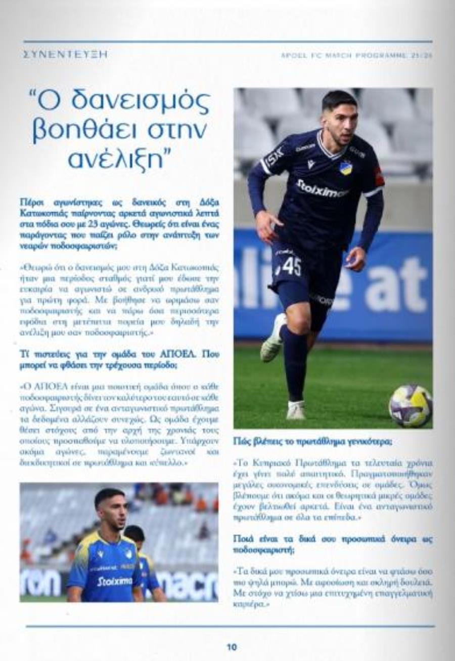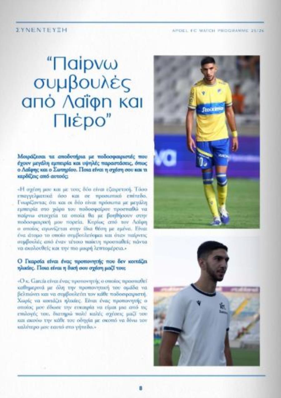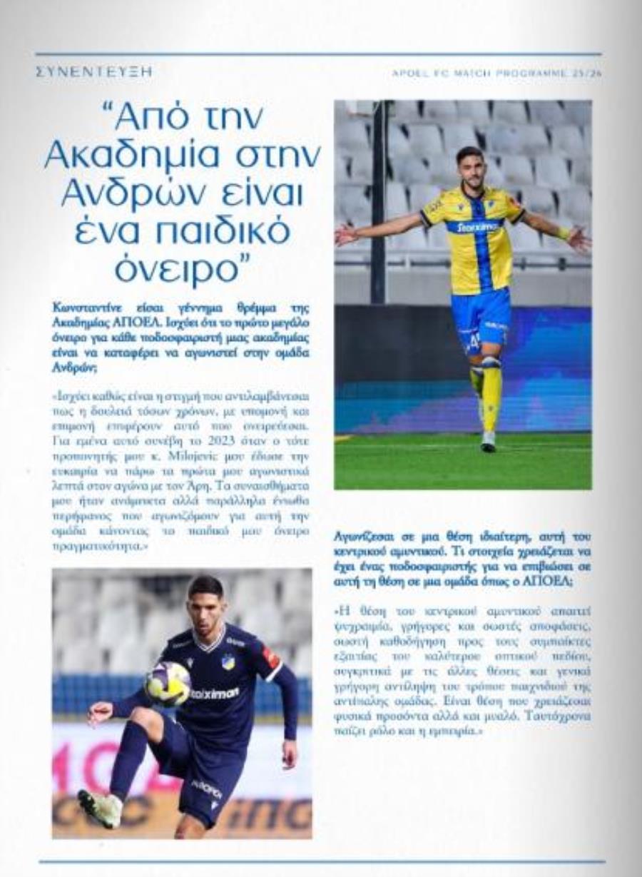 Μεταξύ άλλων, ξεχωρίζει η συνέντευξη του Κωνσταντίνου Γιαννακού, ο οποίος μιλά για τη φετινή πορεία του ΑΠΟΕΛ, τους προσωπικούς του στόχους, αλλά και τη σημασία της αναμέτρησης.