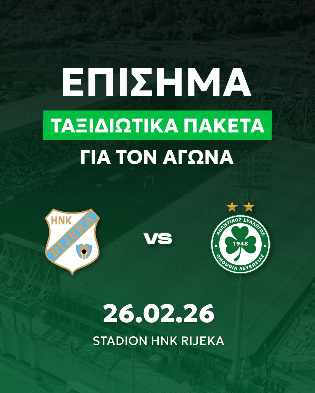 Ενημερώνουμε πως μετά το μεγάλο ενδιαφέρον που προέκυψε για τα επίσημα ταξιδιωτικά πακέτα για Κροατία, ενόψει του αγώνα μας με την HNK RIJEKA, η ΟΜΟΝΟΙΑ αποφάσισε όπως ναυλώσει δύο αεροσκάφη για τη μεταφορά των φιλάθλων μας.