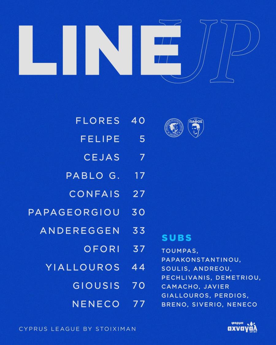 ΠΑΦΟΣ: Γκορτέρ, Πηλέας, Λουίζ, Μπρούνο, Κίνα, Ζάζα, Σέμα, Λουκάσεν, Ντράγκομιρ, Σίλβα, Πέπε.