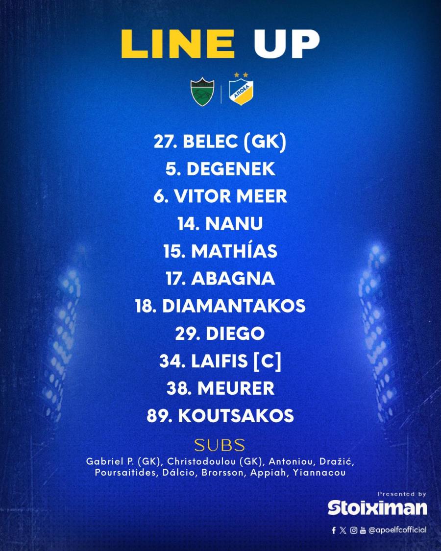 ΑΠΟΕΛ: Μπέλετς, Ντέγκενεκ, Μιρ, Νάνου, Τομάς, Αμπάκνα, Διαμαντάκος, Ρόσα, Λαϊφης, Μέουρερ, Κούτσακος.