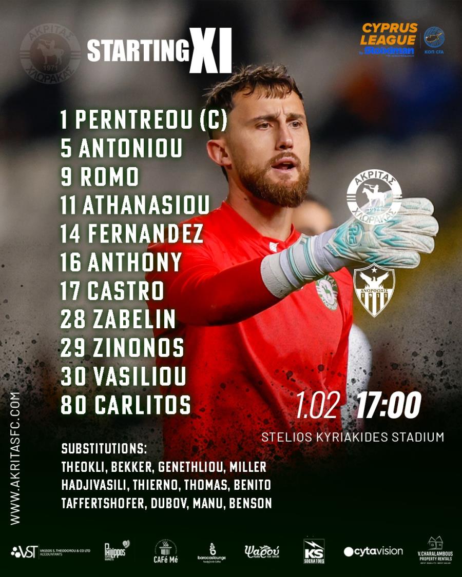 Ακρίτας: Περντρέου, Αντωνίου, Ρομό, Αθανασίου, Φερνάντεζ, Άντονι, Κάστρο, Ζάμπελιν, Ζήνωνος, Βασιλείου, Καρλίτος