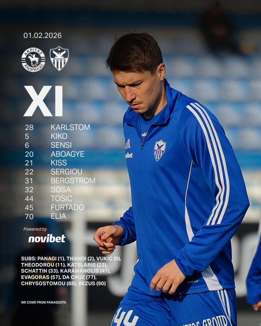 Στον πάγκο: Παναγή, Τάντι, Βούκιτς, Θεοδώρου, Κατελάρης, Σετίν, Καραμανώλης, Χαραλάμπους, Ντα Κρουζ, Χρυσοστόμου, Μπεζούς.