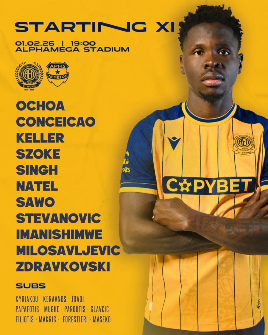 Στον πάγκο οι Πισιηάς, Σωφρόνιου, Λέλε, Κοκόριν, Σανέ, Νεοκλέους, Θεοδοσίου, Κακουλλής, Ακάμπα.