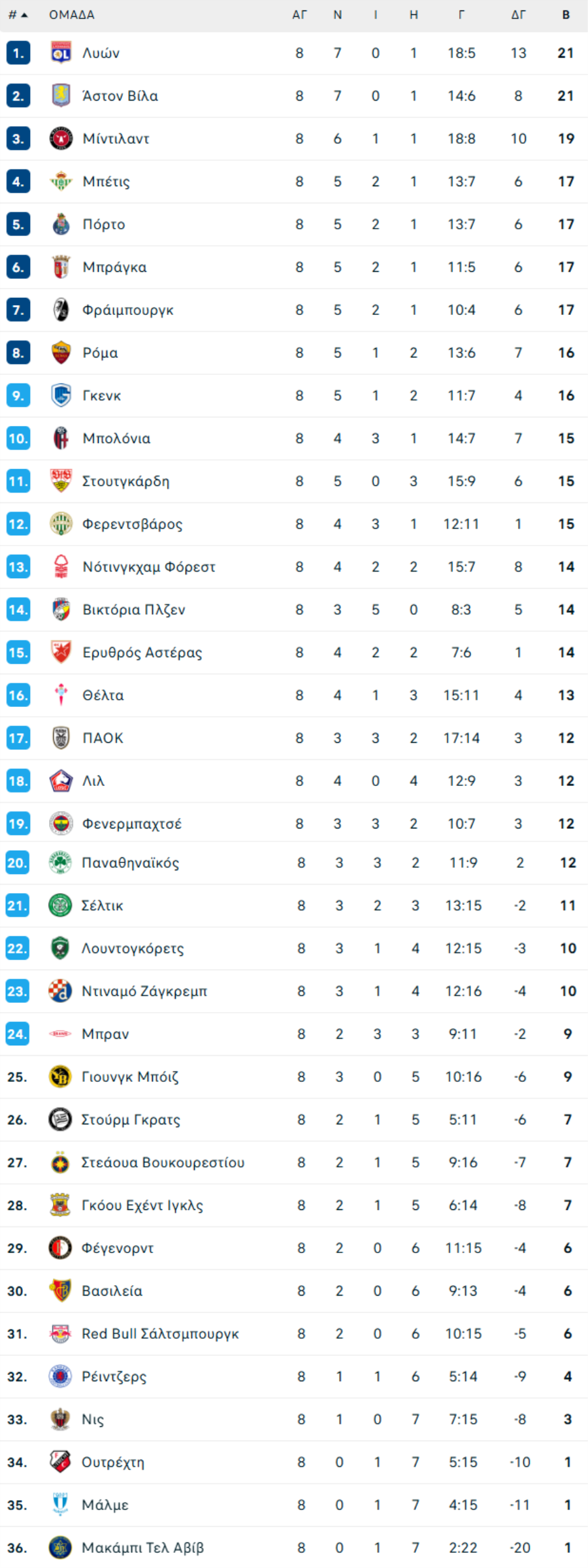 8η αγωνιστική: 29.01Λιόν-ΠΑΟΚ 4-2 (34' Ιμπέρ, 55' Μερά, 88' Κάραμπετς, 90'+3 Ροντρίγκες - 20' Γιακουμάκης, 69' Μεϊτέ)