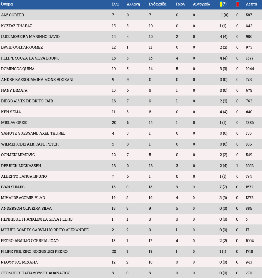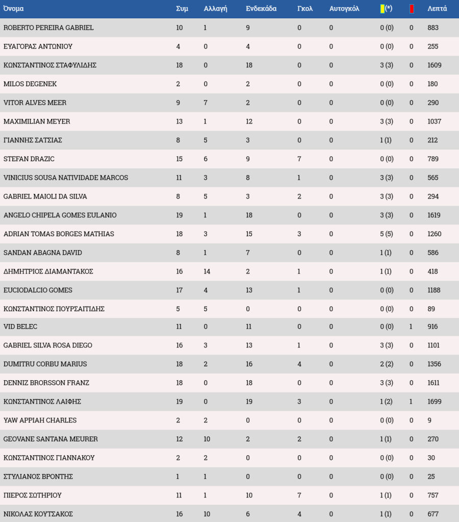 ΕΞ ΑΝΑΒΟΛΗΣ15η αγωνιστική (04/02): Πάφος-ΑΠΟΕΛ 2-0 (Σούνιτς 57', Μπρίτο 90'+) Πάφος: Γκόρτερ (Μιχαήλ 69'), Πηλέας, Λουίζ, Μπρούνο, Κίνα (Γκεσάντ 90'), Όρσιτς (Ζάζα 68'), Λουκάσεν, Σούνιτς, Ντράγκομιρ (Μπρίτο 83'), Σίλβα, Πέπε. Στον πάγκο: Παπαδούδης, Γκολντάρ, Μπασουαμινά, Σέμα, Όντεφαλκ, Μίμοβιτς, Κορέια. ΑΠΟΕΛ: Μπέλετς, Μιρ, Ντράζιτς(Διαμαντάκος 80'), Μαρκίνιος(Μέουρερ 80'), Νανού, Τομάς (Άπια 90'+), Αμπάγκνα (Ντάλσιο 69'), Ρόσα, Μπρόρσον, Λαΐφης, Κούτσακος (Πουρσαϊτίδης 90'+). Στον πάγκο: Χριστοδούλου, Μίχος, Αντωνίου, Μαϊόλι, Γιαννακού. Κίτρινες: Μπρούνο 36', Σούνιτς 39, Κίνα 48' / Μαϊόλι 3', Τομάς 45', Ρόσα 74', Μπρόρσον 90' Διαιτητής: Φελλάς Κωνσταντίνος Α' Βοηθός Διαιτητής: Πέτρου Πέτρος Β' Βοηθός Διαιτητής: Αναστασίου Στέφανος 4ος Διαιτητής: Θεουλή Χρυσοβαλάντης VAR: Malec Pawel Adrian AVAR: Βασιλείου Αδάμος *3 αλλαγές σε σχέση με Ολυμπιακό: Μπρόρσον, Μαρκίνιος, Ντράζιτς αντί Ντέγκενεκ, Μέουρερ, Διαμαντάκου. *2 αλλαγές σε σχέση με Εθνικό: Σούνιτς, Όρσιτς αντί Σέμα, Ζάζα. *ΑΚΥΡΩΘΗΚΕ γκολ ΑΠΟΕΛ μέσω VAR. *6004 εισιτήρια. Εκ των οποίων 676 οι φιλοξενούμενοι. *ΠΕΝΑΛΤΙ υπέρ Πάφου μέσω VAR. *ΧΑΜΕΝΟ πέναλτι Νταβίντ Λουίζ, απόκρουση Μπέλετς.