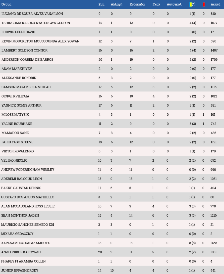 Στον πάγκο: Αντεμπάγιο, Λαζάρ, Χριστοφή, Κουρέζ, Ιωάννου Α., Αχμέντ, Ρισβάνης