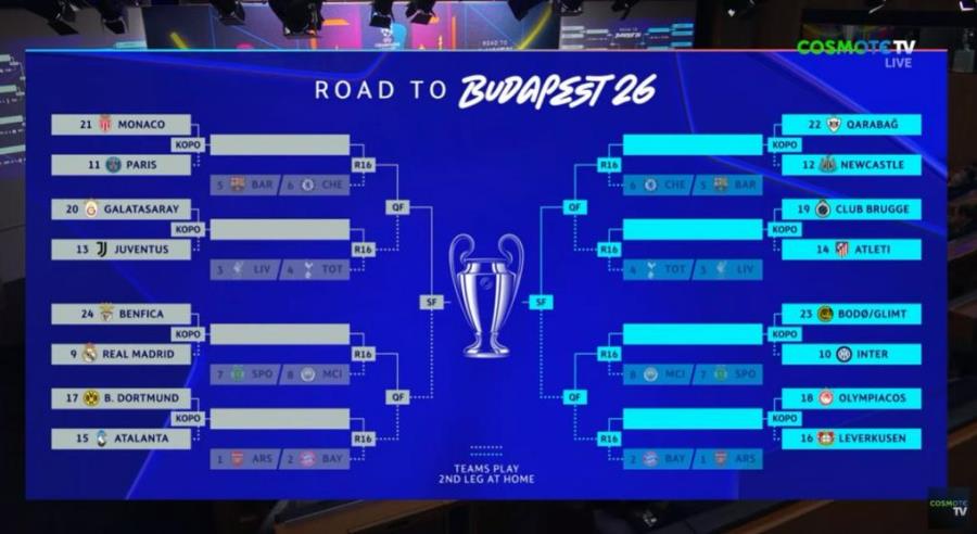 Υπενθυμίζεται ότι με Άρσεναλ ή Μπάγερν Μονάχου στον επόμενο γύρο, εφόσον τα καταφέρει ο Ολυμπιακός.