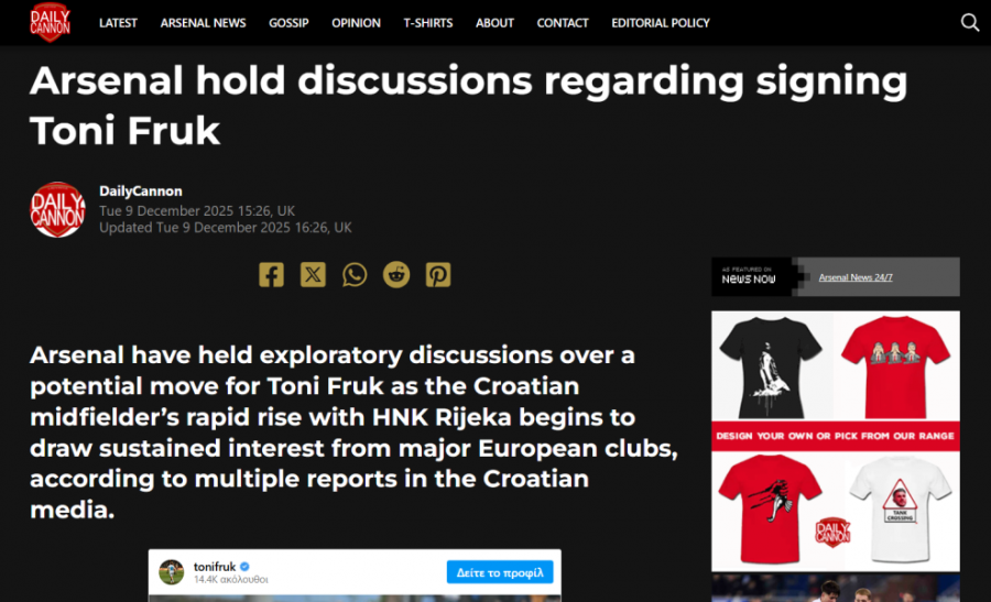 Το παρακάτω δημοσίευμα μάλιστα αναφέρει ότι ο Φρουκ έχει μεγάλη εξέλιξη, θεωρείται ο κορυφαίος παίκτης του κροατικού πρωταθλήματος και βάζει υποψηφιότητα για την αποστολή της Εθνικής Κροατίας στο Παγκόσμιο Κύπελλο του καλοκαιριού.