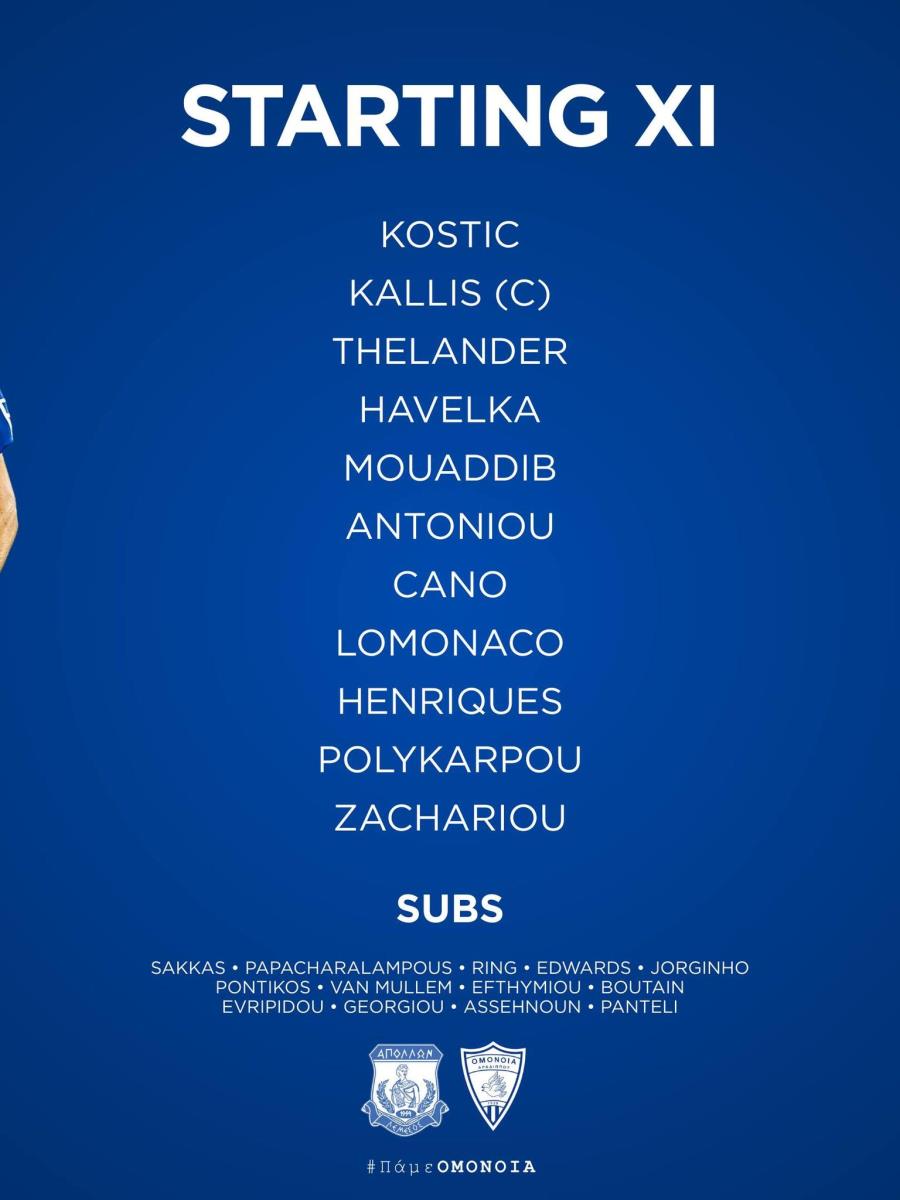 Στον πάγκο: Στυλιανού, Λέουβενμπεργκ, Λαμ, Άδωνη, Ζμέρχαλ, Ασουνσάο, Ντουοντού, Σπόλιαριτς, Σιήκκης, Εσκρίτσε, Βρίκκης, Γιούσεφ.
