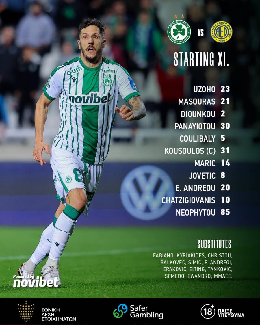 Στον πάγκο: Φαμπιάνο, Κυριακίδης, Άιτινγκ, Σεμέδο, Εβάντρο, Μαέ, Τάνκοβιτς, Σίμιτς, Μπάλκοβετς, Εράκοβιτς, Ανδρέου Π., Χρίστου.