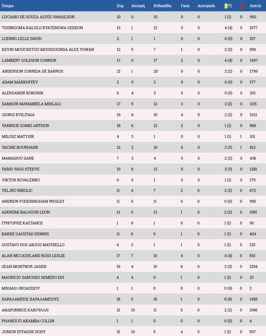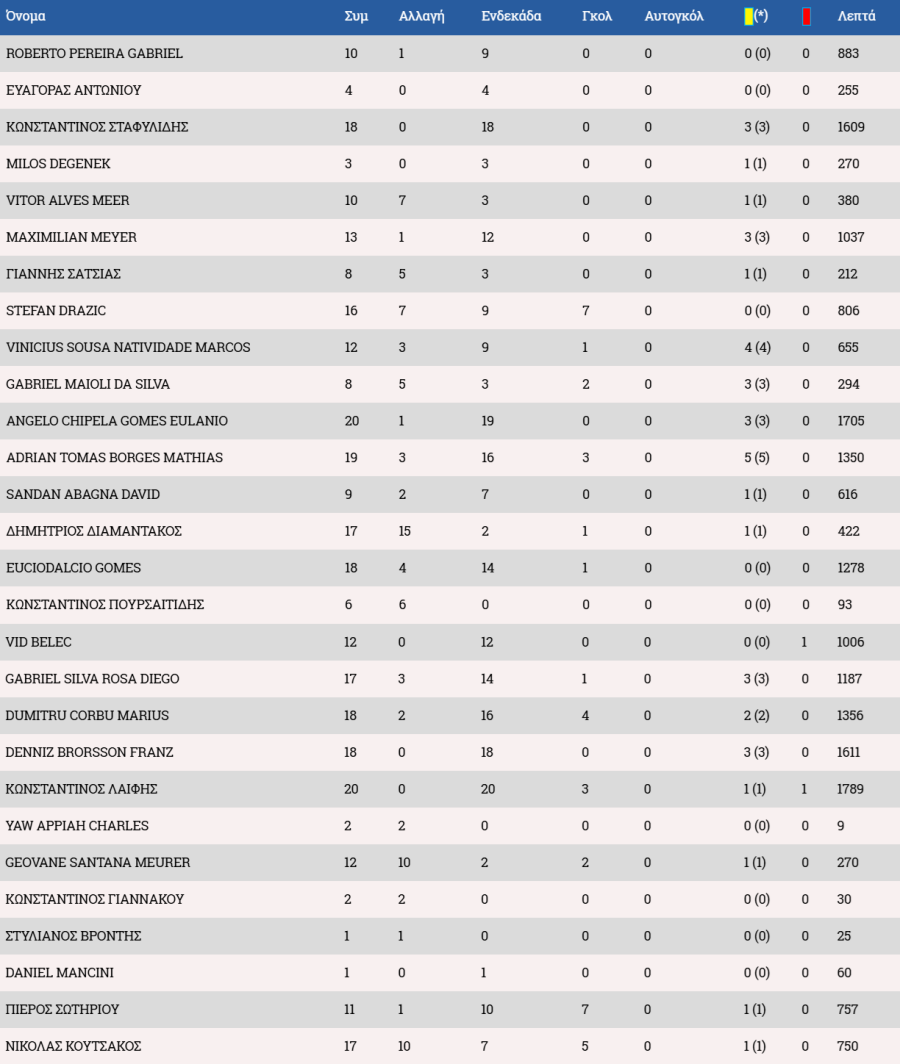 Στον πάγκο: Πέτρου, Μιχαήλ, Γκολντάρ, Μπασουαμινά, Όντεφαλκ, Μίμοβιτς, Κορέια