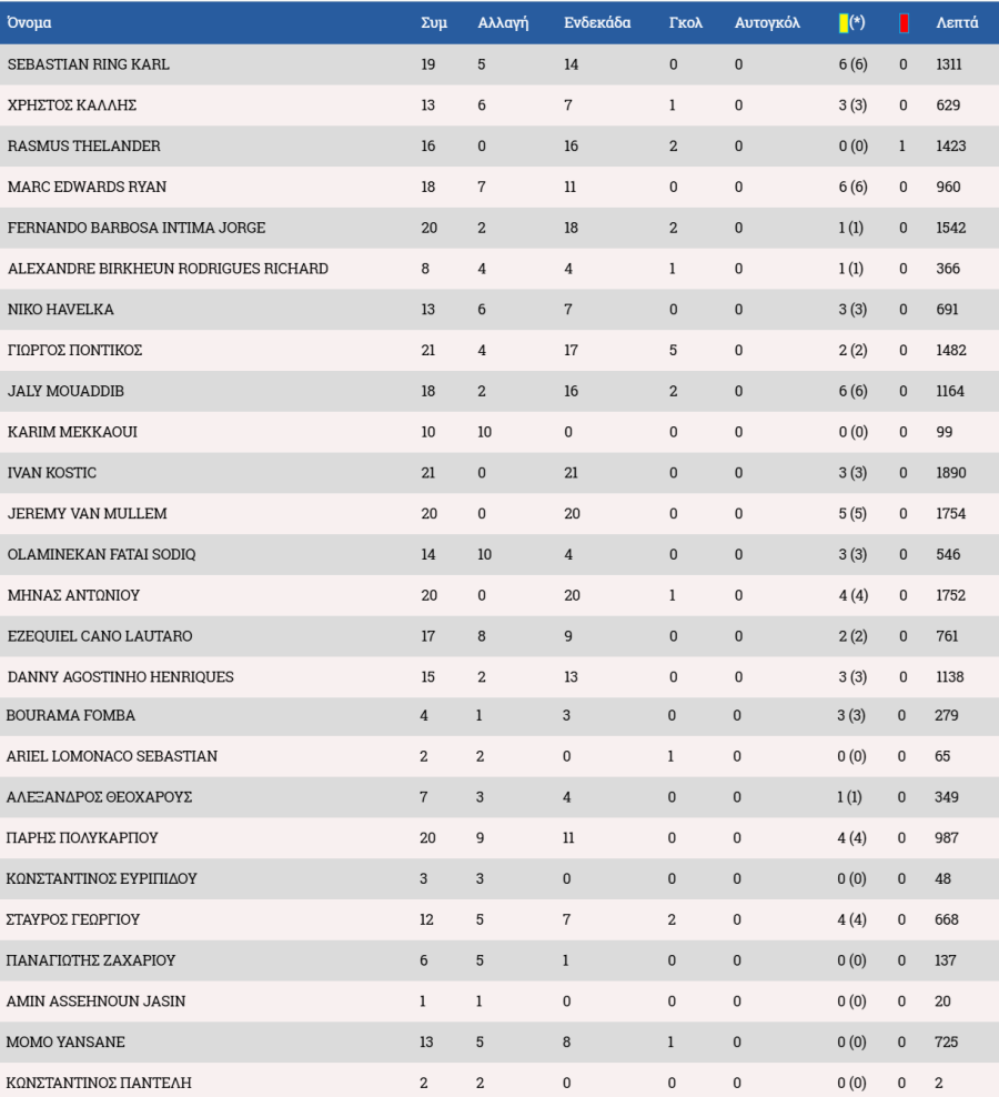 Στον πάγκο: Περέιρα, Χριστοδούλου, Αντωνίου, Μπρόρσον, Άπια, Μέουρερ, Γιαννακού.