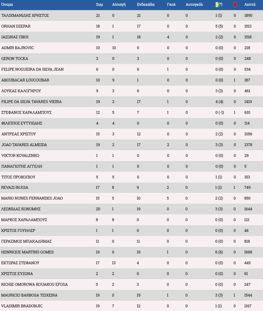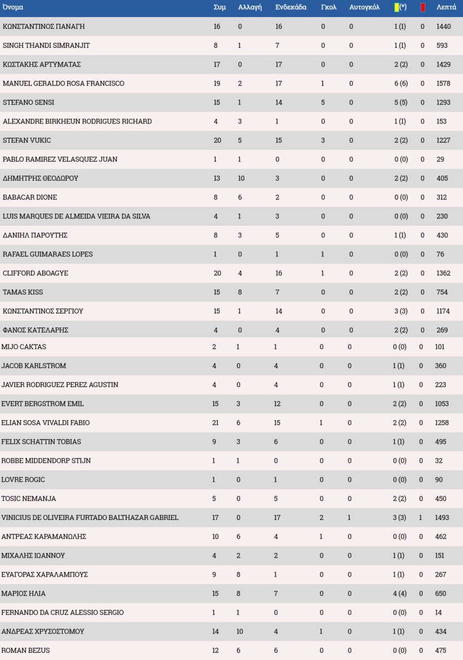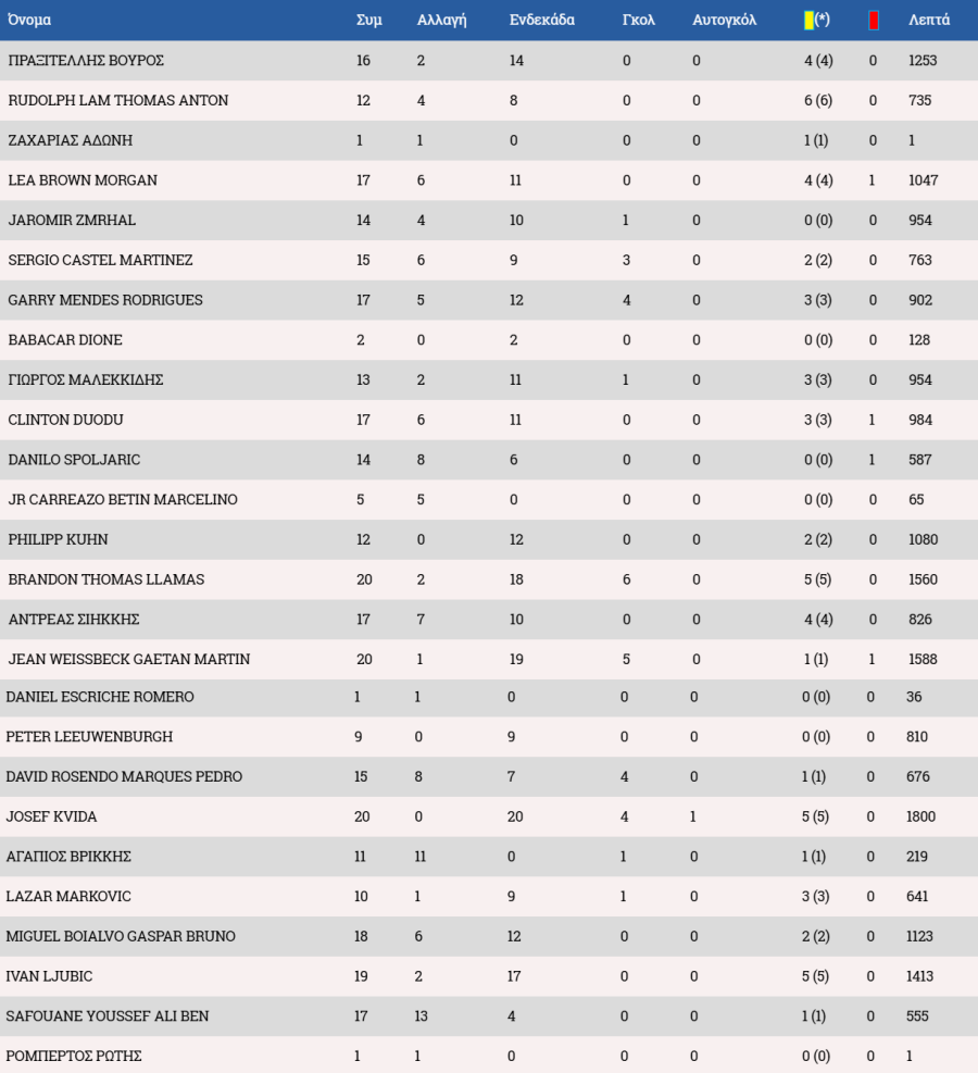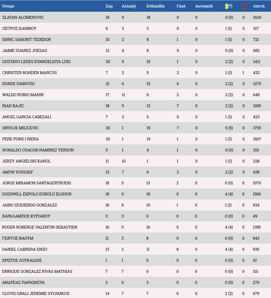 *Αποβλήθηκε μέλος του τεχνικού τιμ του ΑΠΟΕΛ (Μπέντζαμιν Γκαρσία).