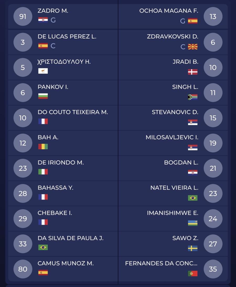 Freedom24 Krasava ENY: Ζάντρο, Ντε Λούκας, Χριστοδούλου, Πάνκοφ, Ντε Κόουτο, Μπα, Ντε Ιριόντο, Μπαχάσα, Τσεμπάκ, Σέζαρ, Κάμους