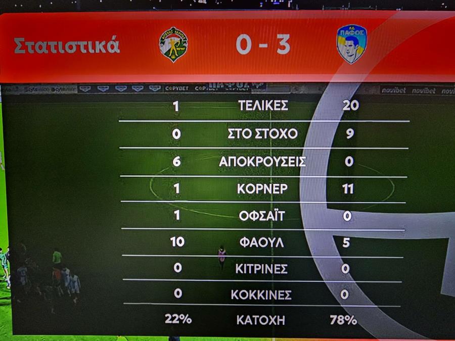 Κύπελλο (11/02/26):Διγενής-Πάφος 0-3 (Άντερσον 22', Ζάζα 30' πεν., Άντερσον 50') Διγενής: Σακκά, Ανδρέου, Νεοφύτου(Καπαρτής 46'), Μπαγιούνοβιτς (Μενοίκου 75'), Καλλένος, Νύσσης (Σοφοκλέους 82'), Γκουγκούρης, Αντωνίου(Τσοκκάς 46'), Χατζηδημητρίου, Κοστίν, Αλάντζε (Κυρατζιής 62'). Στον πάγκο οι: Αριστείδου, Μαρκέτος, Ξενοφώντος, Αργυρού, Κυριάκου, Πολυβίου, Ιωσήφ. Πάφος: Παπαδούδης, Κίνα, Ζάζα (Φοντούρα 75'), Σέμα (Σούνιτς 46'), Ιωάννου, Γκεσάν, Μίμοβιτς, Ντράγκομιρ (Γ. Μιχαήλ 84'), Άντερσον, Μπρίτο, Σίλβα (Μπασουαμινά 62'). Στον πάγκο οι: Πέτρου, Ν. Μιχαήλ, Λουίζ, Μπρούνο, Όρσιτς, Λελέ, Όντεφαλκ, Ενρίκε, Πέπε. Κίτρινες: Διαιτητής: Λιοτατής Νικόλας Α' Βοηθός Διαιτητής: Μεταξάς Μιχάλης Β' Βοηθός Διαιτητής: Ιακώβου Χαράλαμπος 4ος Διαιτητής: Κουσιάππας Σίμος VAR: Τσαμπαλάς Ανδρέας AVAR: Σολωμού Δημήτρης Παρατηρητής: Κυριάκου Αγγέλα *7 αλλαγές σε σχέση με Ομόνοια: Παρέμειναν στην 11άδα οι: Παπαδούδης, Κίνα, Ιωάννου, Σίλβα. https://www.youtube.com/watch?v=uUC0AxqaajI