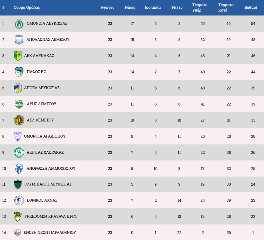 *Σύνολο 167 ντέρμπι πρωταθλήματος: 64 νίκες ΑΠΟΕΛ, 50 Ομόνοια, 53 ισοπαλία, 237-206 γκολ.