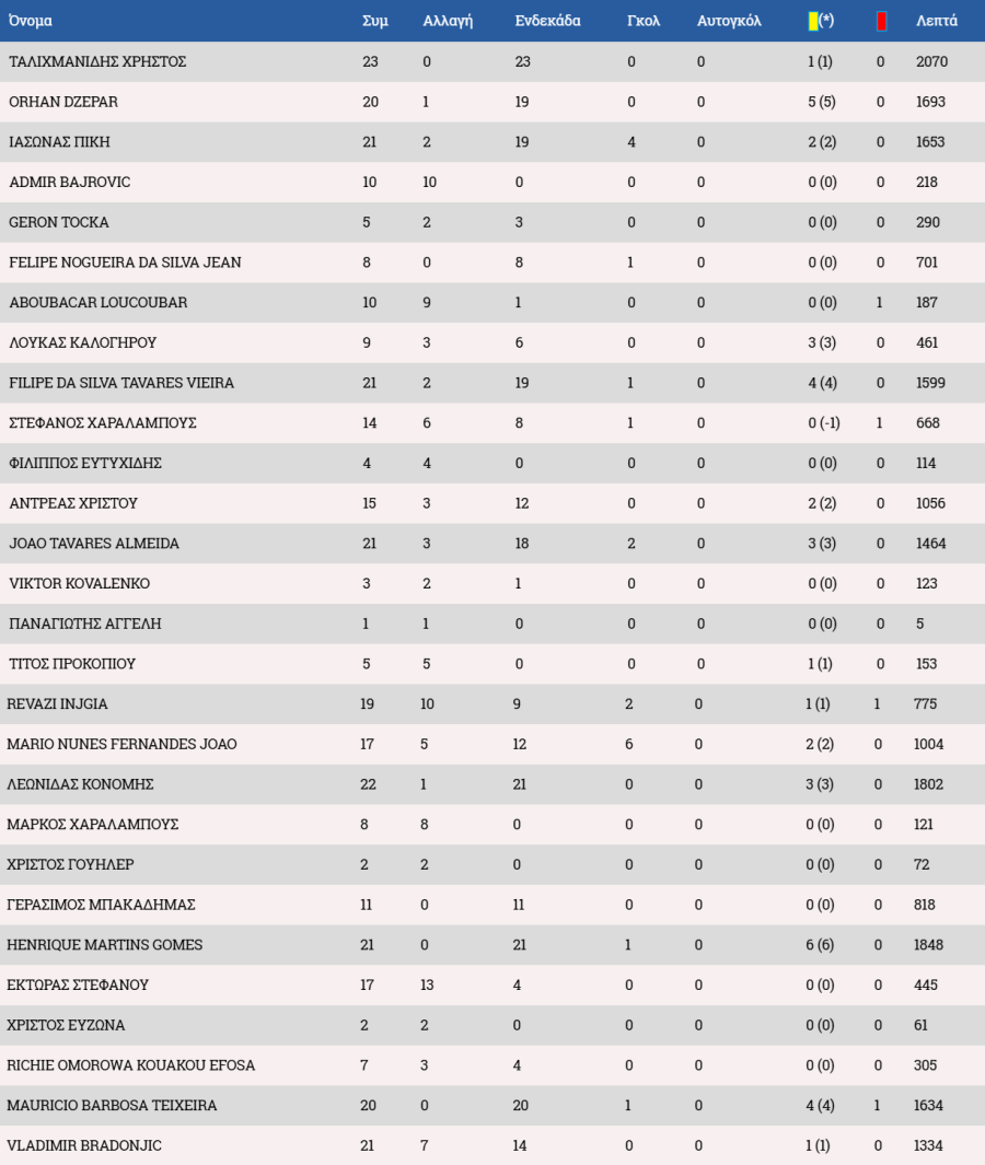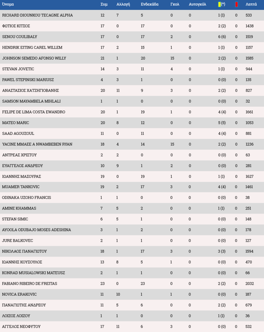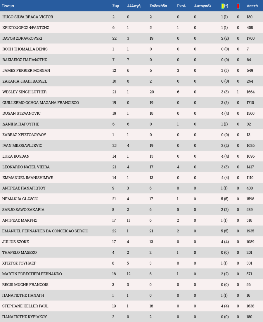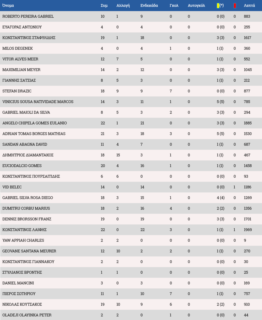*Στο 90' ο Παναγιώτου ως τερματοφύλακας με τη φανέλα του Κυριακίδη λόγω τραυματισμού του Φαμπιάνο.