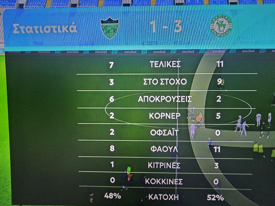 *Κίτρινη στον Χάβι Ροθάδα στο 82' για διαμαρτυρίες