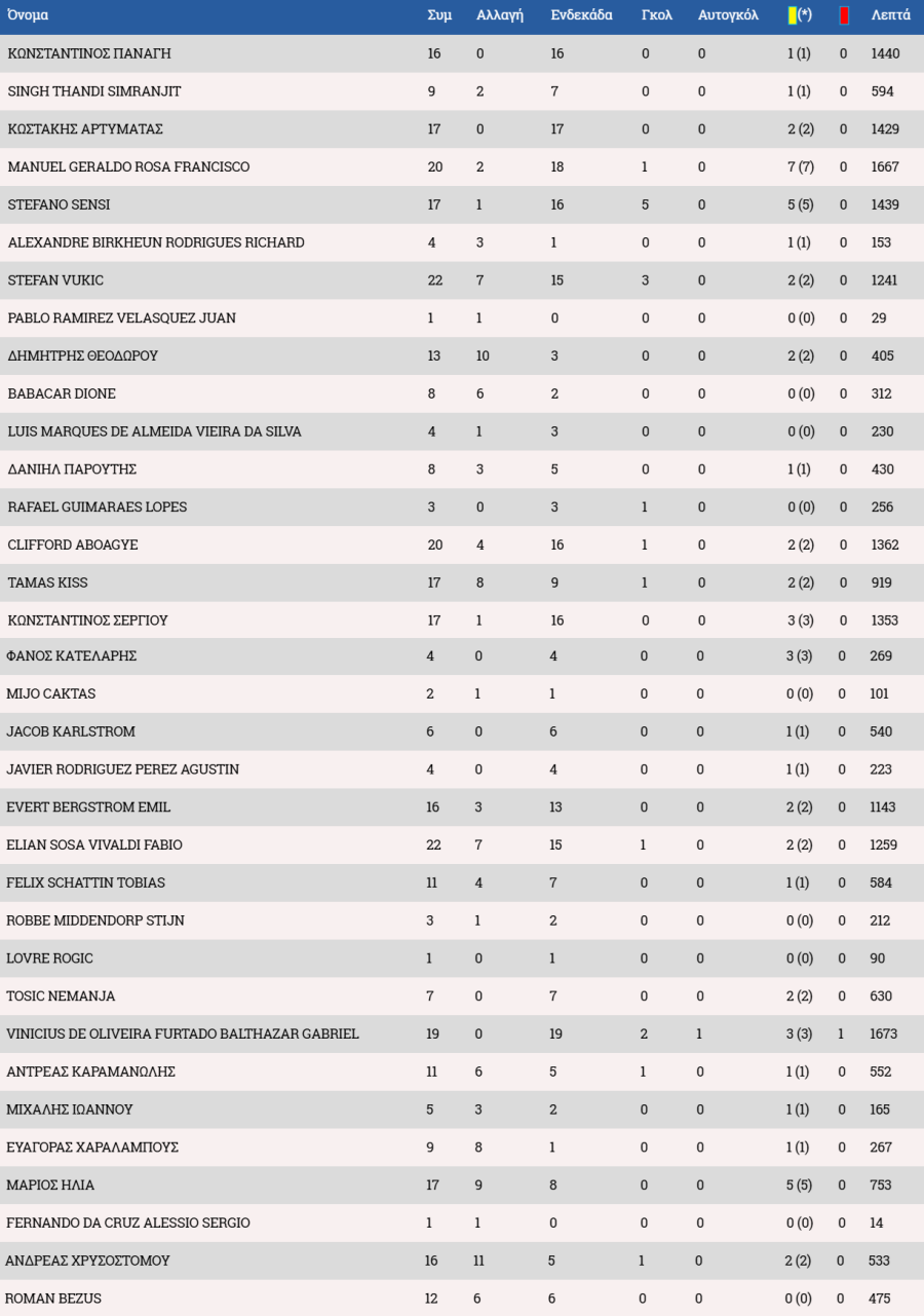 *1 αλλαγή σε σχέση με ΑΠΟΕΛ: Φελίπε αντί Σιβέριο.