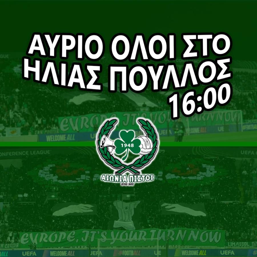 Οι οργανωμένοι φίλοι της Oμόνοιας θα πάνε το Σάββατο 21/02 το απόγευμα στο «Ηλίας Πούλλος» και στην τελευταία προπόνηση ενόψει του αγώνα με τον ΑΠΟΕΛ για να ντοπάρουν τους ποδοσφαιριστές της ομάδας τους.