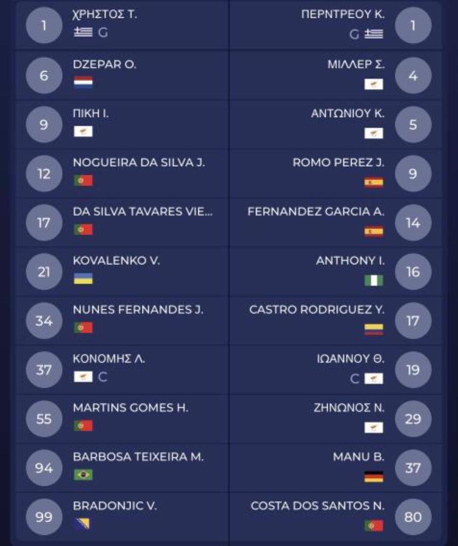 Στον πάγκο οι Θεοκλή, Μπέκερ, Μπάρι, Αθανασίου, Ολαμπιράν, Τάφερτσχοφερ, Χατζηβασίλης, Ζάμπελιν, Βασιλείου, Λιμπόμπε και Άνανγκ